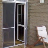 Может использоваться узкий пластиковый профиль, но только в том случае, если вся площадь москитной сетки будет плотно прилегать к более жесткому каркасу в виде металлической или пластиковой рамы. Сетки для дверей устанавливают на отдельные петли для того, чтобы иметь возможность оставлять основную дверь открытой.