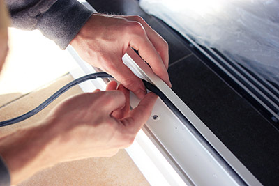 - После этого аккуратно вставьте уплотнитель в паз, как это было с предыдущим материалом.